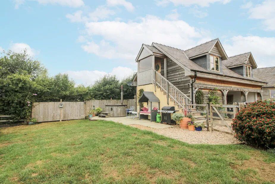 Inside, it’s cosy and well–equipped. Outside, a fully enclosed garden keeps curious pups safe, and the wood-fired hot tub is sublime after Carding Mill Valley or a Church Stretton ridge walk. Thoughtful owners are on hand if needed, and there’s even a Mud Daddy dog washer for those mucky-paw moments.
