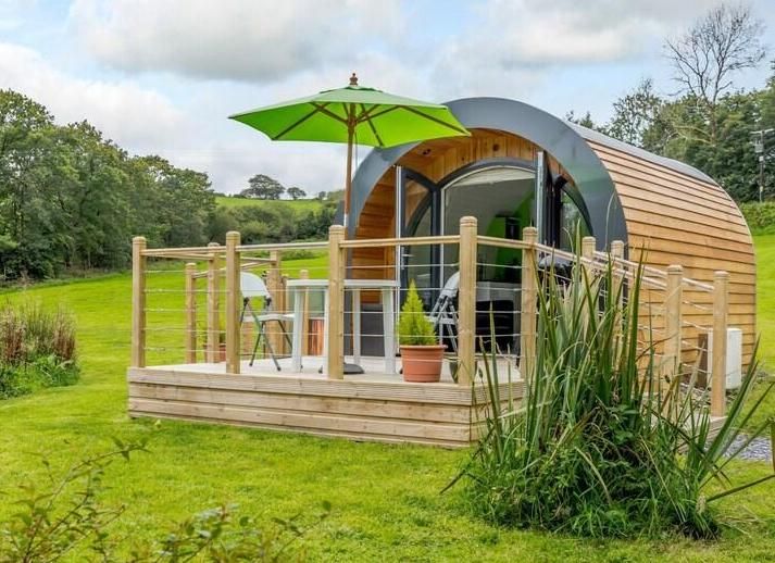 Fern Leaf Roundhouse is one of four stylish huts on a glamping site in a heavenly countryside setting in Cornwall. The huts offer high-end luxury with hand chosen fixtures, fittings and en suite bathroom. A porthole in the roof allows guests to lay back and watch the stars on a clear night.
